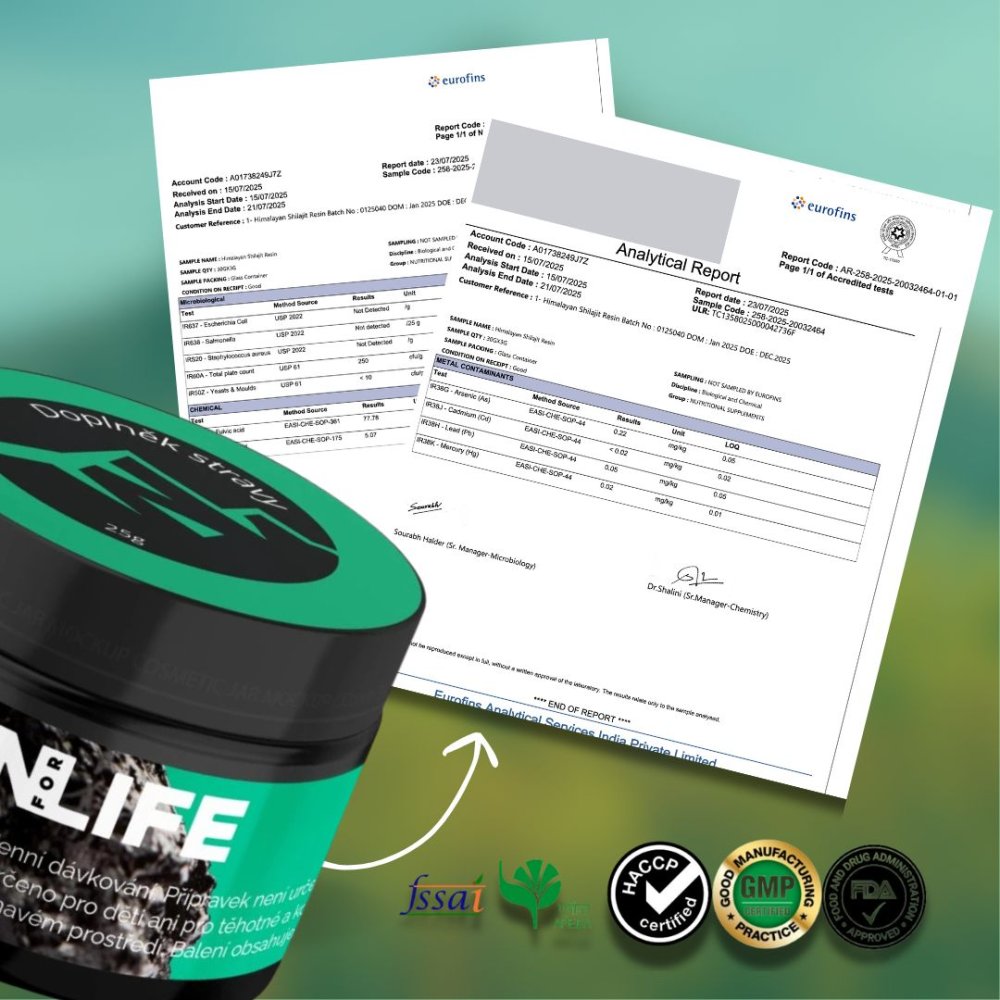 Ano, shilajit může přirozeně obsahovat těžké kovy z hornin a půdy, proto je bezpečnost klíčové téma. Kvalitní produkt má vždy COA s kvantitativním testem na těžké kovy z akreditované laboratoře, protože domácí testy tohle odhalit neumí.